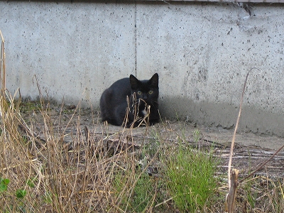 朝らしくなってきたころ、駅へ引き返す途中に仔猫が少し大きくなった感じの猫に出遭う。初め1匹だけと思いきやそれから草陰や石陰に次々と見つかって3匹もいた。まったく鳴かず目を丸くして黙って並んでる。往きしに餌付けされてたやつだな。こんなところでは、そんなことも好き放題やれそうだよなあ。もとい、こうでもしないと、さびしいよ。猫は寂しくないようだ。何よりも人が住まっているところだから。長閑で時間を長く取った、鳥の鳴き音響くふいに現れた本線の駅だった。