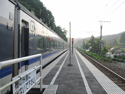 新潟いき急行きたぐにが抜けていく。でもこの辺になるともう新潟も近く車内はつまらないだろう。これから土を踏まねばならぬ人たちと、すでに馴染んでいる私、生活感が滲み出ているところへの下車ゆえ、寝台急行の特別な装丁からは堕ちるけど、旅は地を這い進み早く始めてしまうのは楽だと思えた。