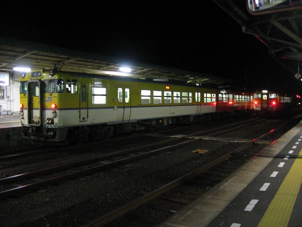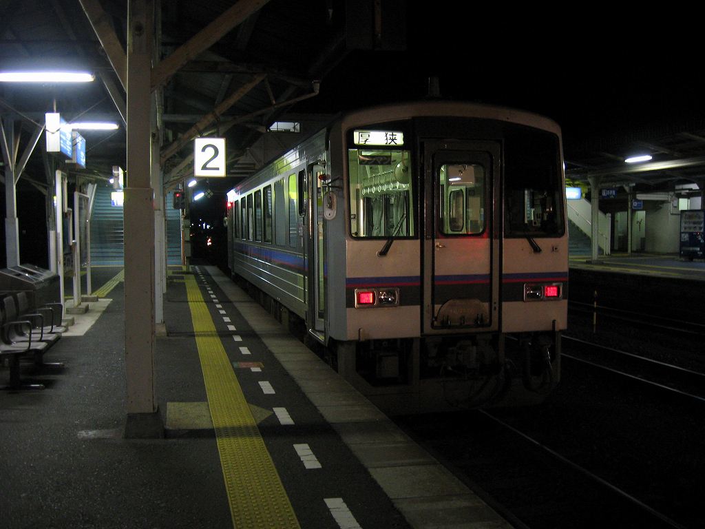 多くの私服、制服の学生や、少数の仕事帰りの人たちとともに降りる。そこは、人々の汗が蒸発してこうなったかと思うほどの、むわぁと湿度と潮気の充満した、そしてなおも鹹水を絞らせるような熱帯夜の端緒だった。気動車の轟音が耳をつんざき、疲れた体を振動させる。