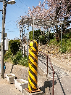 ホーム出口前。このポールはいったい何だろうか。