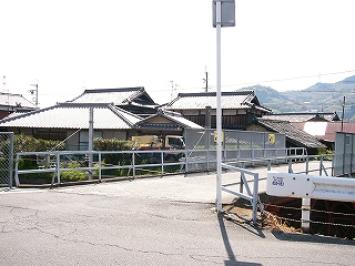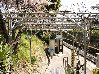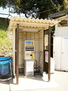 高野口から来ると、ホームは右側だった。 その唯一のホームには小屋に入った小さな券売機と、 据え付けの長椅子のある待合所があった。 待合所の両脇には用具箱もあり、 この駅もしっかり管理されていることが想像された。 円い大きな金網のくず入れの袋も、替えられたばかりの水色のものだった。