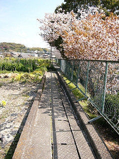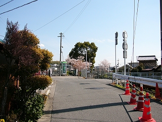 2本目の桜の木を回り込むと、あの鼠色の華奢な橋だった。 いったん橋をやり過ごすと、狭さから開放されて、 雑然とした菜園が広がり、下方の線路は遠くへと去っていた。 そこでふと振り返ると、鼠色の橋の両端に、 対を成すように静かに桜が咲いていた。 こんな見えにくいところでも、はげしく駅を彩っていたものがあったとは。 戻って橋を渡りはじめると、やっぱり欄干が低い。こわごわ渡るような感じだった。 空を映す透明な水と一緒に渡り、ここが地上なのか、空中なのか、測りかねた。 切り通しで消えた里道を繋ぐために、わざわざ架けたのだろうか。 そういう橋には、惹かれて仕方がない。 隣の近い橋で我慢させないから、昔の地形や道が半透明に残される。 また半ば異空間を見下ろすこと、またそこへの突き出しが、不思議な感覚を生み出す。 下が高速道路なら、新幹線なら、その不思議さもいっそう強い。 渡りきって線路沿いに歩くと、民家の真裏を這い蹲るようだった。 ホームを見下ろすと、もう20人近くの人が集まっている。 やはり母親と一緒の制服の男子が多い。 このまま赤い橋まで歩こうかと思ったが、ホームの人も怪訝そうで、 家の裏手でるあこともあって、引き返した。