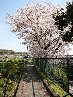 丘陵地の集落のはずれに、ひっそりと豪勢に咲く丘の桜に