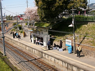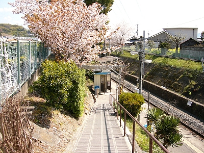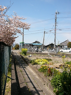 この駅にも桜があって、その小さな坂道の伸びる水色の中を華やかにしていた。