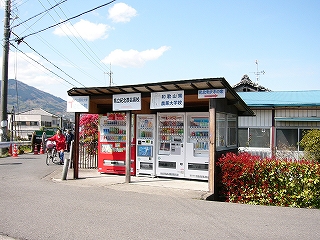 向かいには自動販売機の群れがきちんと小屋に収まっていて、