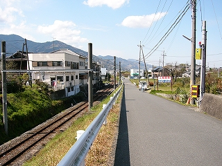 線路に沿ったまっすぐな道も下り坂だったからだろう。