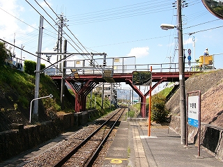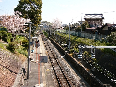 駅を出る細い上り坂も、古い集落の中に自然に現れた坂道のようだ。