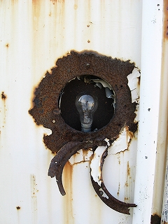 貨車のテールランプには電球が入ったままだった。