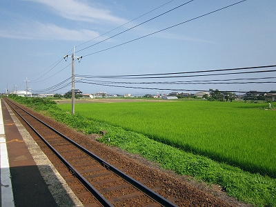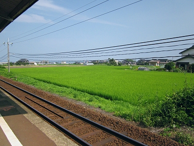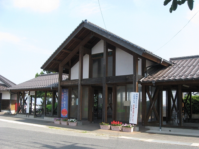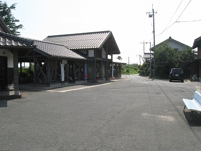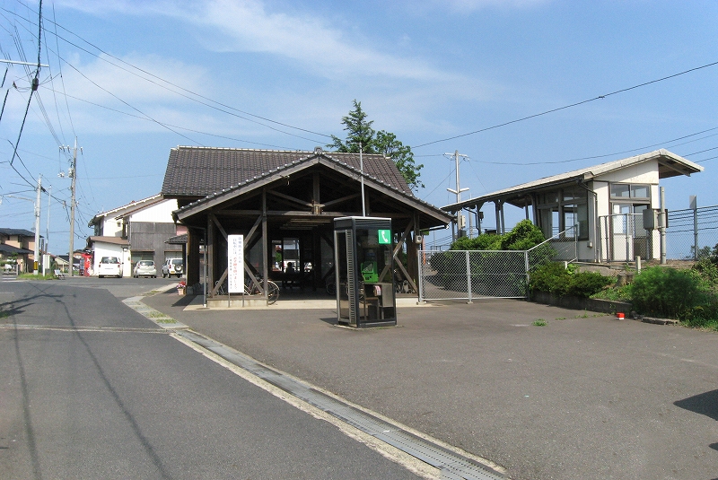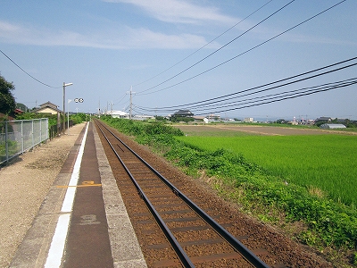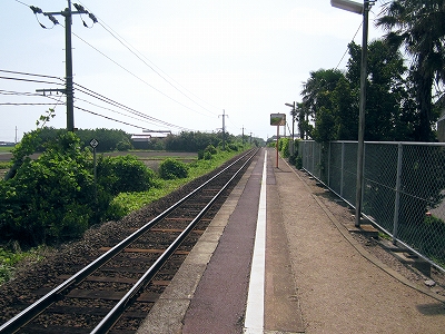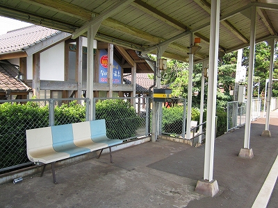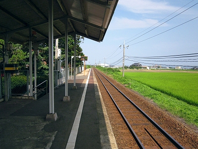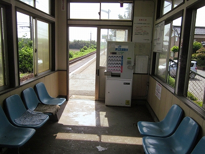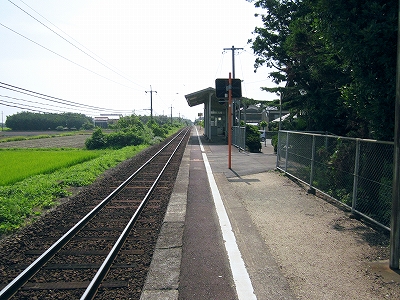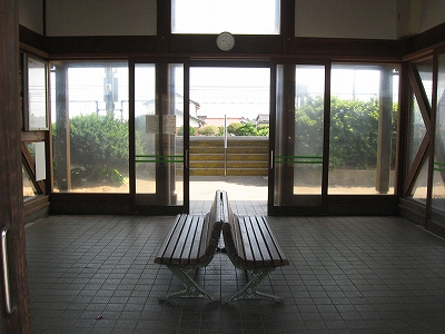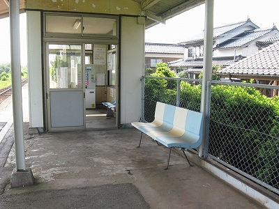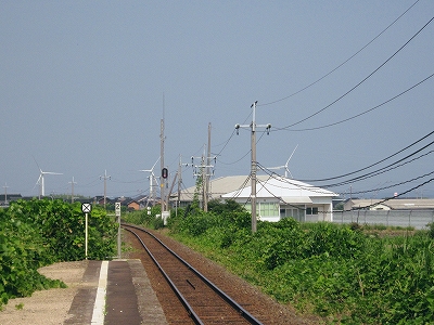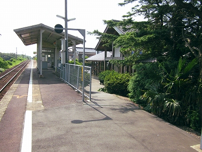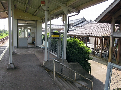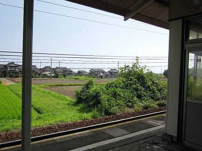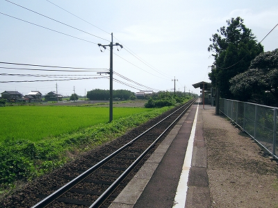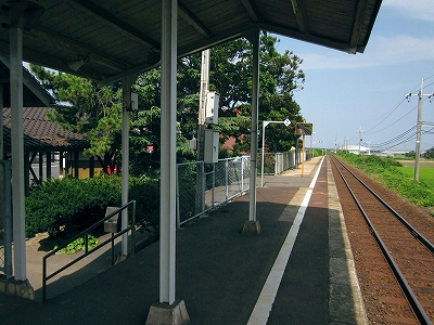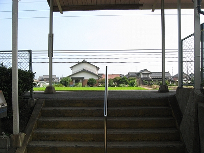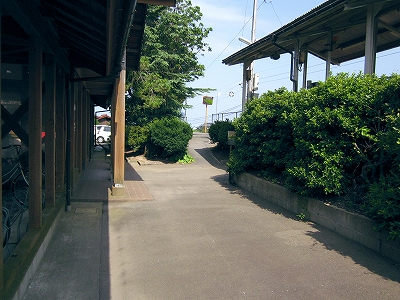 外へ出ると昔からの家屋もあるけど、あまりせせこましくもなく。反対の海側には御崎の集落が塊り、海岸がおもしろそうだが、あまりの暑さと何の出会いの前触れのなさに早々にプラットホームに引きこもる。駅舎の中は影が深く涼めたが、ホームはいい風景で海風が入ってきていた。