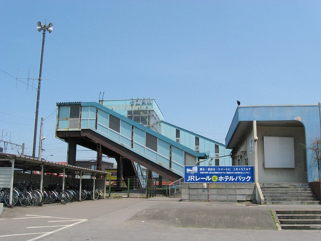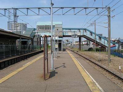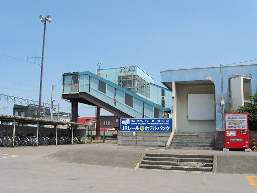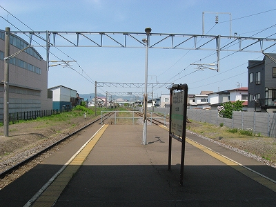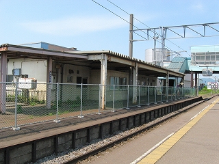 私は階段を下り、再び恵まれた陽射しと、ほどよく冷涼な風につつまれる。駅前らしきものはなく、道路の横っちょだった。旧駅舎が残っているのが特徴的としかいうほかない。今は鉄道の労働組合が使っている。それがもうぼろいのだが、半球窓や間口の隅をまるくしたへんに未来的だった。今は機能は小ぶりな橋上駅が担っていて、錆を交えた爽やかなスカイブルーが空にきれいに溶け込んでいる。こんな暫定風の建物はきっと、簡単につぶされ、人々の記憶から薄れていくだろうことを想う。むしろそうではなく、空気のように利用し、帰りは暗くて外観など知らず、回顧展で駅の肖像を見せられても、そのときの自分は思い浮かばない、ああ、こんなだったと、いった後からもう、忘れられた記憶の1ピースの無駄な再現だと思われるような、そんな駅だった。