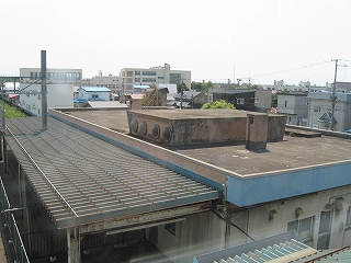 窓から見た旧駅舎の屋根。実用の目的から来たデザインだったのだろうか?