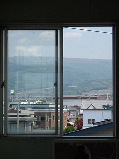 窓からは高原状の麗しい山が望める。何だか風がきつそうだ。