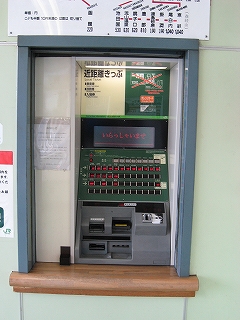 JR北海道の券売機。濃緑がトワイライトエクスプレスを連想させる。