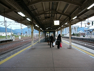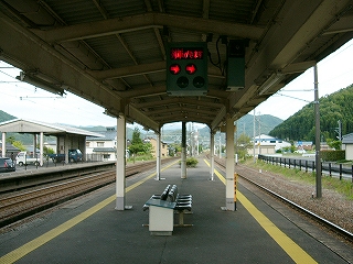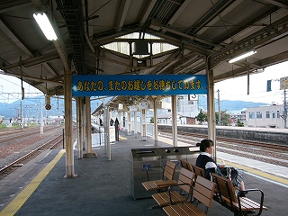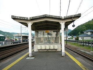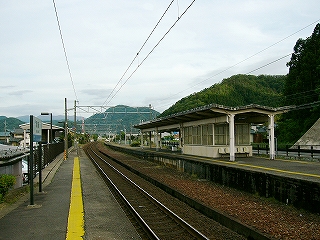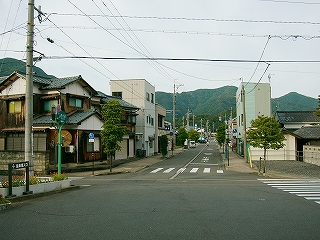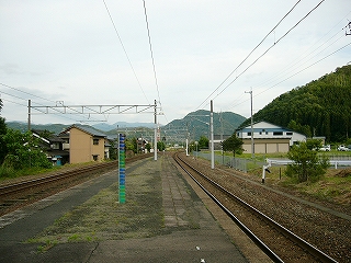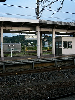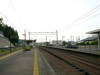 外に出る。まっすぐの広い通りのほかに、旧街道が横切っていた。民家の並ぶ曲がった狭い道から、軽自動車が乾いたエンジン音を響かせて現れ、一時停止、そして続きの旧街道を走り去っていく。そんな光景を何度か見た。広い通りには店もあったが、人通りというものはなく、静かな夕方の小駅だった。しかし列車の近づくころになると、誰かが1人、とぼとぼ駅に向かって歩いてくる。その広い通りの突き当たりは国道となっているようだ。
