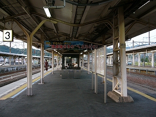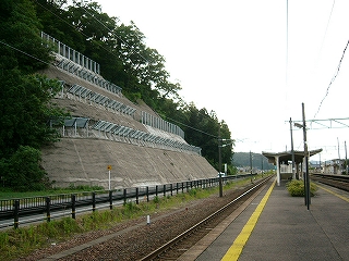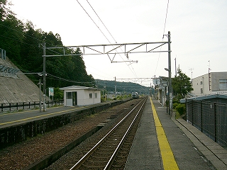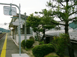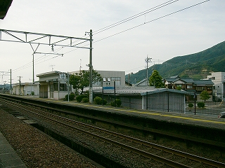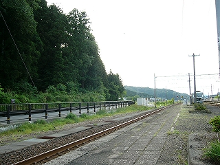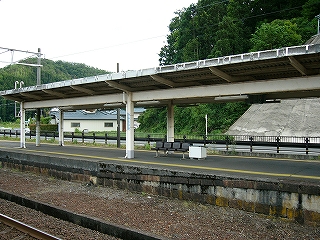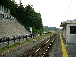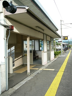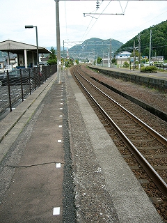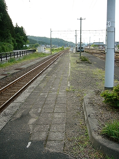 構内は中央の線をはずした2面3線だけど、ここは2面3線、とはいえないような雰囲気。駅舎が見えにくいからだが、車内から見ていると特に、待合所のあるホームが2つあるだけの駅に見える。そのためあまり知らないうちはいちおう駅舎がどんなだか確認してしまう。こういう、実際降りて何かを掴みたいような駅に機会を得てようやく降り立ったわけで、はじめのうちは、それだけで得心のようなものも感じていた。