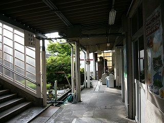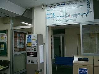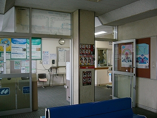 駅舎に戻った。あいかわらず何か機器の音がしているかのように、しーんとしていて、駅員はガラス向こうで事務をしていた。ちらっとみた概観は新しいものだったのに、中は一般的な中小の木造駅舎内の構造で、またもや意表を突かれたかのようだった。斜めになった出札口、縦長の券売機、自動入鋏装置というように、委託駅級の中規模駅の設備で、意外と地位のある駅なのかと思えた。家庭用のプッシュホンを公衆電話のように置いていて、いっそう古さを醸し出す。