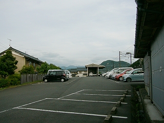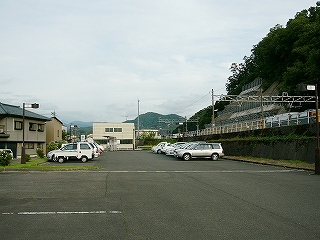 駅舎を右手に線路よりの道を進むと広い駐車場になっていた。これが1つ目。