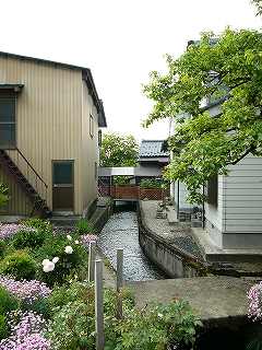 途中の風景。川に橋を架けて同じ家をつないでいるかのようだった。