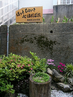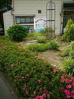 駅前のとある道別れのところが、ふれあい花壇して調えられている。色とりどりの花が咲いていたが、つつじまでも花をつけていた。どこにでもあるいつでも緑の植え込みだけど、花をつけるのはほんの一時期だけだった。この花壇は商工会婦人部によるとある。駅の回廊にあった植え込みの花も、同じ人たちが手入れしているとなっていて、何かと手間をかけて駅に潤いが失われないようにされてあった。商工会館併設だからということもあるのかもしれないが、そうでなくても商工会の人による駅の手入れというのは、なぜか各地で見られる記憶がある。