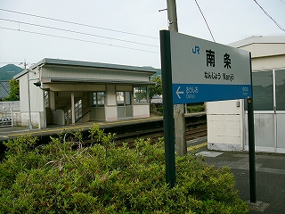 駅舎は新手の公衆トイレやとも思われるデザインだけれども、2階建てなんだからそんなわけはなく、南条町商工会館と合同の建物となっているのだった。