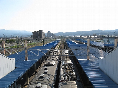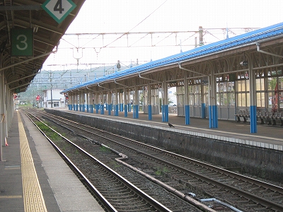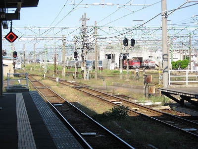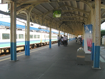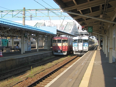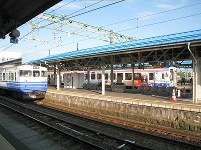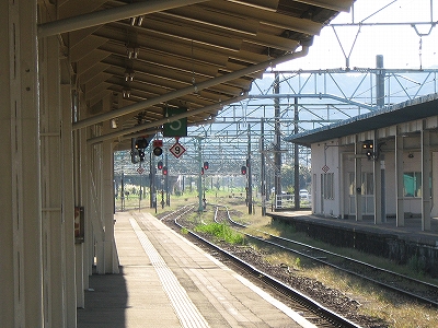 伝統的らしく、長野からの列車や、長野行きの列車が頻繁だ。もう特急は走っていないが、同じ車両で快速を出しているほどとなっている。直江津に長野はイメージを結ばないが、ここにこうして来てみると、浜伝うのをやめ、安定した山間に雲隠れしたくもなり、日本海縦貫線に収斂される信越線のあの曲線は意外にも、昔の転轍機みたいに磁力の強さを感じさせる。それは直接四年前にホテルの窓から見たことがあったからかもしれない。しかしそうでなくても、直江津は能生地区より、妙高地区の方が似合っている。