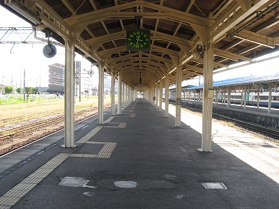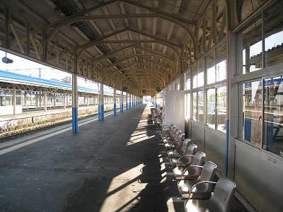 とりあえず直江津は、情緒は宿っているところで上屋の塗炭の青さやそれを支える白い木柱の整然と並ぶ美しさは、雪国の ある重要駅であることを問わず語り、透明の風除けは美しく旅情の意匠でもあったが、そのあまりの長さゆえ、沿岸の季節風に立ち向かうひたむきさが潜み隠れていた。