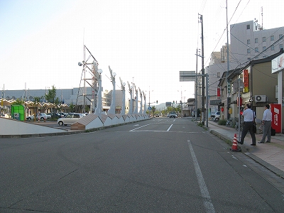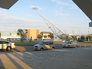 ここは裏も表も広く土地を取って、帆掛けのモニュメントや船舶のモチーフを大掛かりに扱い、港の雰囲気を出そうと苦心惨憺されていた。海が少し離れているからだろう。内陸の人のためにとも、内陸からの影響を払拭しようとしているとも取られた。しかしこれらの全貌を視界で把握するのは困難であるということが、失念されていた。それで異様で、軍港らしくか 傲然ともしていた。
