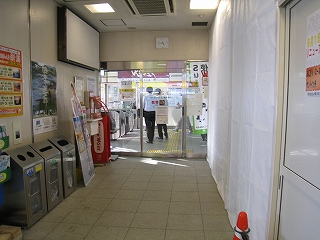 駅待合室は工事中。