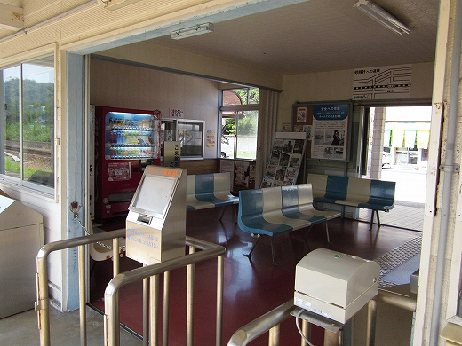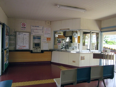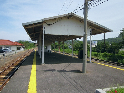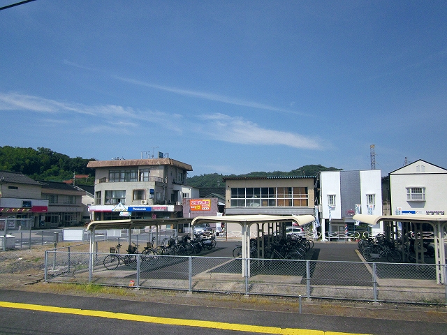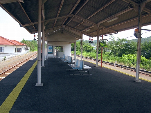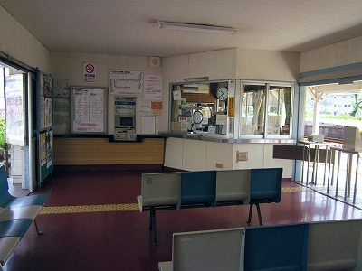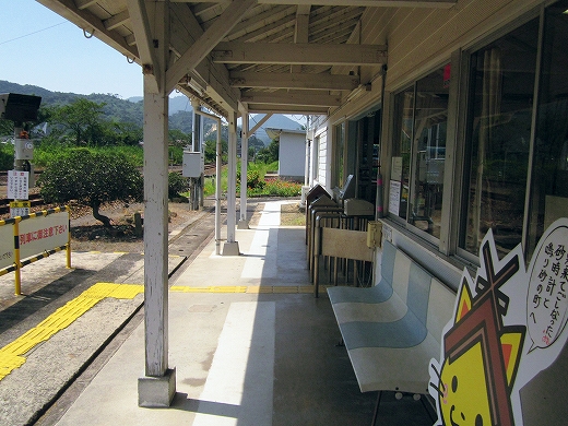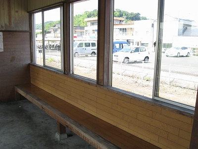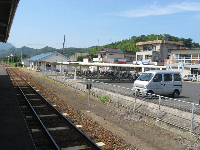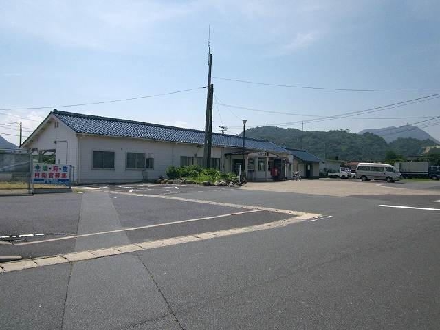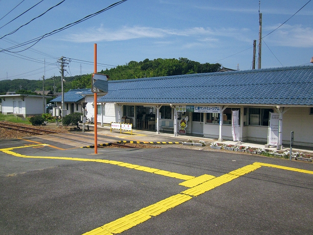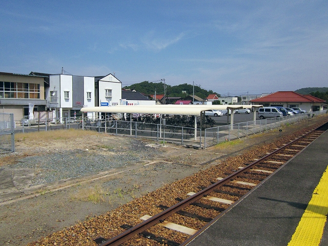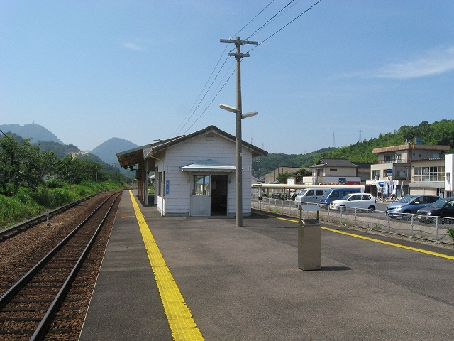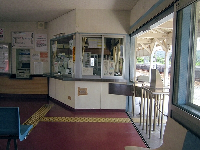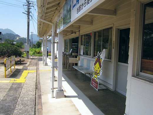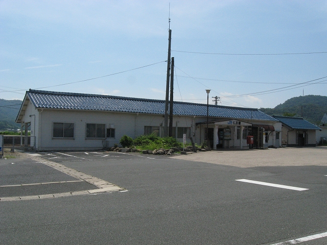 駅舎はかわいい、かわいい水色の石州瓦を広く俯角に戴き、隅の方にワッペンのように、JRのロゴが施されている。