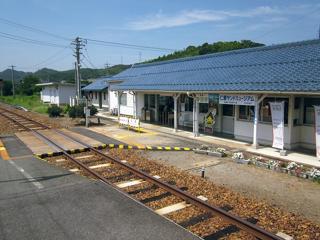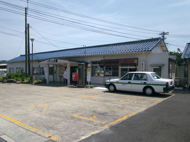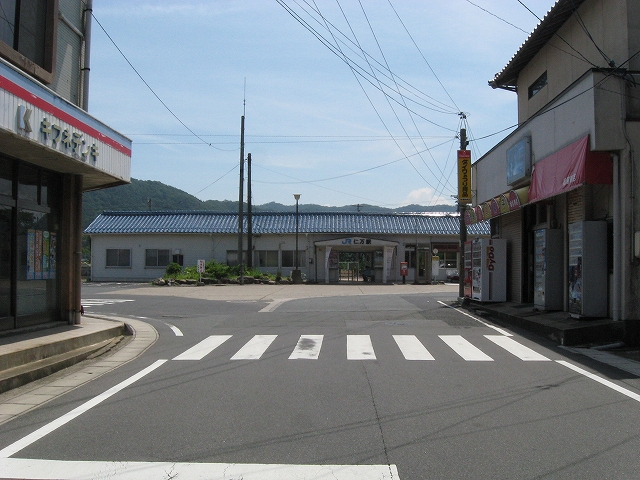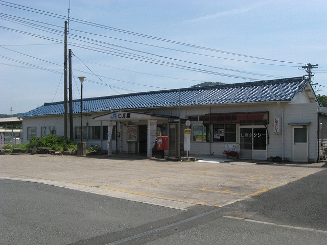 この土地や、気団や、時間や、人々の思惟がそれを生み出している。仁万はささやかな港町だ。ちょっと粋な建物も見て取れる。ここは生きるための町であり、風光明媚なところはいくらでもあるともいいたげだった。あたりは妙に小森が多く、こんもり緑が濃い。これらはかつては島だったようだ。遠くも岡山にあるような中国風の尖った山が見えて、石灰があるのかと思った。しかし山の駅の感じはない。仁万はずっと海の方を見ている。