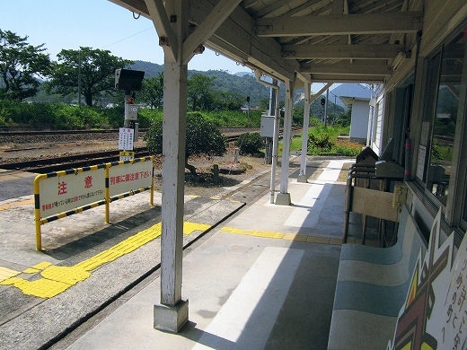 午前の十時半の自由な夏に、大田市駅のホームで待っている。陽の光がますます白さを増しつつあり、私は心の中で地団太踏む。大田市の子らも時刻前に改札をくぐってきて、この列車に合わせて家からはい出てきたようだ。 大田市の駅員はちょっとこの駅が大きそうな感じで放送している。 アクアライナーは地元のみんなも乗りたがる列車だ。閑散地をうまくかっ飛ばして、島根の西の都市へと運んでくれる。旅行者からすると、米子発益田行きと、二百粁弱も走ってくれる列車である。