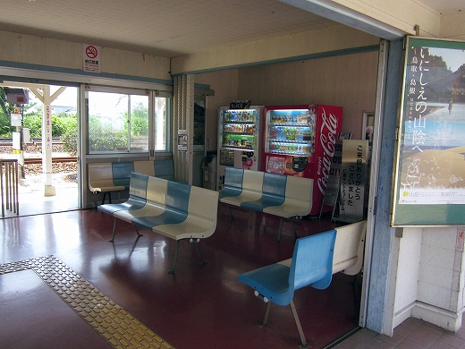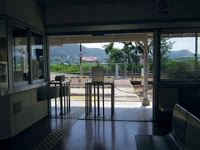 臙脂の床の駅舎の中は白昼の深甚たる暗がり、遠く静かに蝉は鳴き渡り、間口に切り取られた外の様子を眺めると、ちょうど夏の山陰のしじまに、私は佇んでいた。