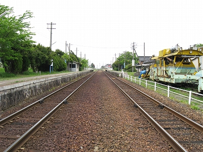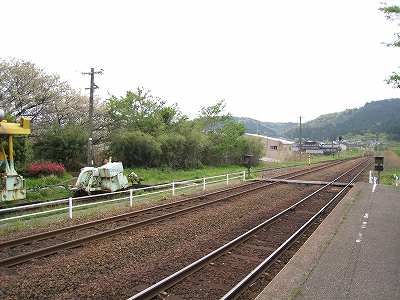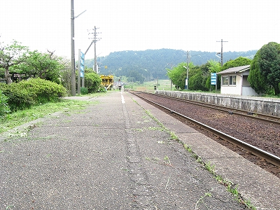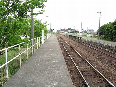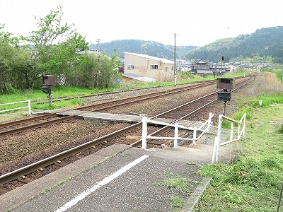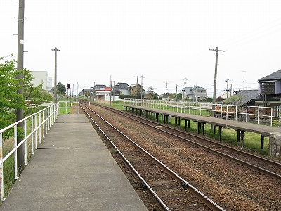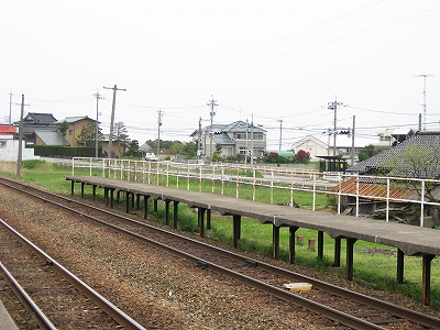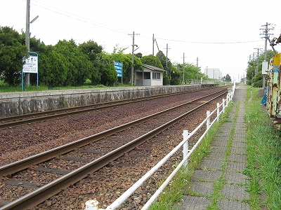 原っぱの中にあるような構内踏切は遠いから、もう線路を渡っちゃろうと思ったが、線路内におりても向こうのホームを上がる段が見当たらないので、諦めて素直に踏切に向かった。汽車時代と違い、段がないととうてい登れない。