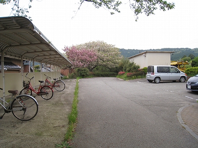 駅を出て右手の様子。駐車場と駐輪場。自転車がかなり少ない。
