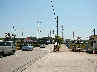 近くの踏切。遮断機はない。