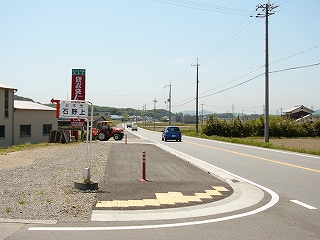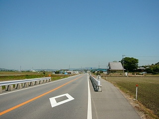 県道へ出る道を進んで。