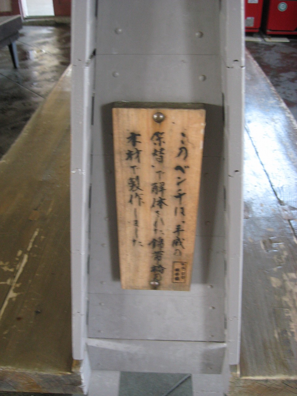 平成の改修で解体された錦帯橋の木材を使って作られたベンチとのこと