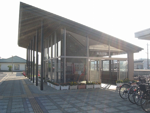 ホームを歩くと丸い花壇が真ん中に並んでいて、かつての出雲市駅があったころをイメージできた。かつては遠距離列車がここを通過し、車輌基地へと向かったかもしれない。いまは市駅ももちろん高架になり、街も整備が終わっている。ここ西出雲もやけに画一的なところだ。駅の設備としては主に屋根付き陸橋があるだけだが。