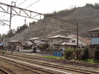 ホームより山側、小倉方面。かなりの高台に住宅地がある。