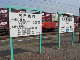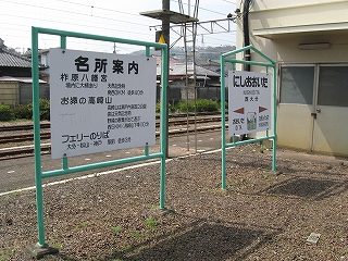 名所案内と駅名標。