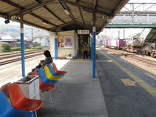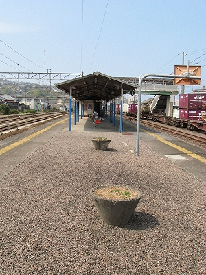 ホームの階段前にしつらえてあった白の小部屋を私が通りかかると、白い髭を生やした駅員はいきなり顔を上げ、切符を確認した。素通りされるのかと思ったのかもしれなかった。というのも駅舎はちゃんとあるのに、こんなところで改札があるとは思わない人がいそうだったからだった。この駅は多くの側線や貨車、コンテナで錆色に包まれそうなところだが、この改札前のように花の咲いたプランターや、ホームの色とりどりの椅子のおかげで、鮮やかという九州らしさがまたこことにもあった。