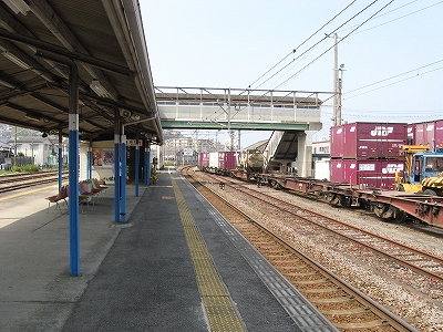 ホームではなく待合室で列車を待った。オフレールステーションと違いフォークリフトによるコンテナの整理だけでなく構内の貨物列車の入換作業もあるので、作業員はしょっちゅう見かける。客のいるのはごく自然なことのように何も気にせず連絡を取り合っていた。一人セカンドバッグを小脇に抱えた50後半ぐらいの男性客が駅舎に入って来た。彼はためらいなく鞄を椅子に置きざりにして、トイレに入っていった。私の脚に立て掛けた自分の重たい鞄、穏やかな海を渡ってくる風、自分が不審がられないものとして存在しつ、自分と関わりなく周りは動いていることには、やはり陶然とせざるをえなかった。