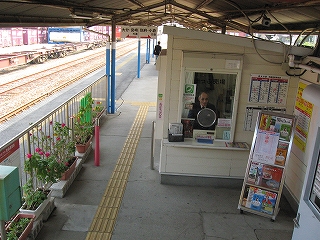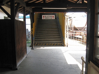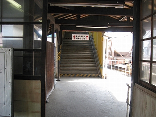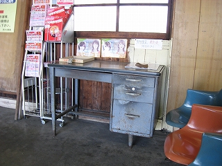 階段から見た駅務室。