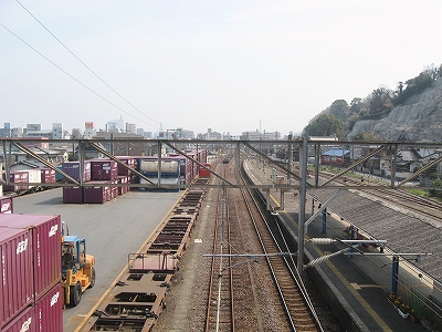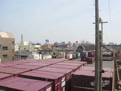 貨物場と街並み。