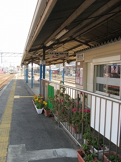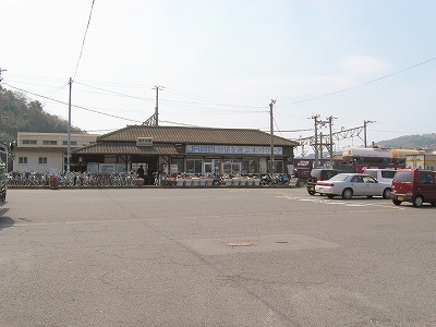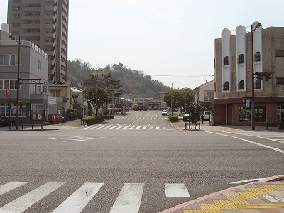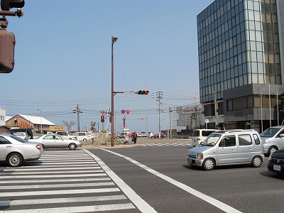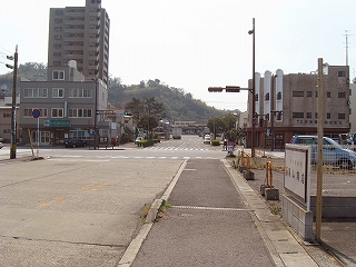国道を渡って、駅を望む。