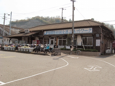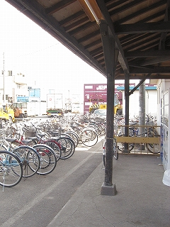 本来駐輪所となりそうな場所が貨物場になっているので、駅舎前に二輪が並ぶ。