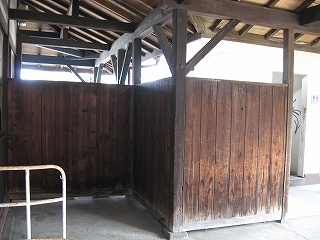 上の写真右手の木の壁。トイレが右に隠れている。