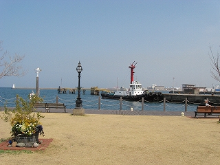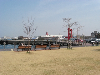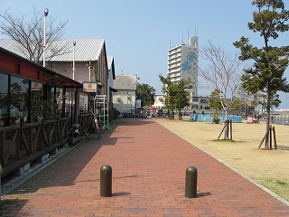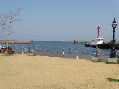 さて、海辺まで出てみようか。港、貨物の関わりらしい感じで、あまり往来のない広い坂道を駅から下っていく。やがて大往来の国道を越し、岸壁に近づいた。しかしそこはおしゃれなカフェなどがあり、公園化もされていて、意外にも人の訪れることを意識した場所で、取り残されたわけでも業務だけの場所でもなく、それはうれしいような、肩すかしのような。さっきの駅も観光がらみかと思えてきたぐらいだった。案外定番なところに来たのかな、と首をかしぐ。海風も爽やかさも当たり前のようだった。むろん公園化ということは、元はそうでなかったのだろう。しかしこの旅行で初めて望外な所で晴れたお昼の海を望めて、さっきの大分の街も合わせて、気分は充実していった。残念なのはここではあまり時間を取っていなかったことだった。