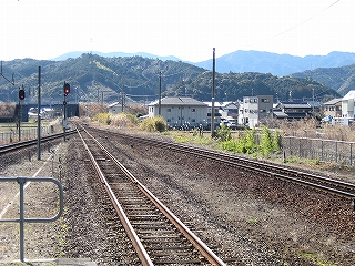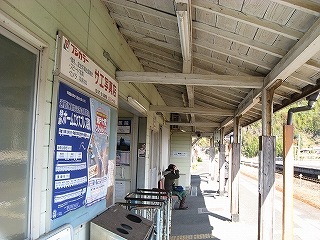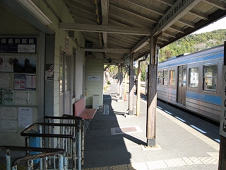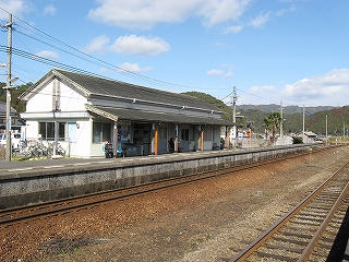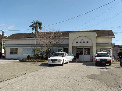 駅の建物はポーチの屋根を立方体にして、そこにアーチを描いてあって、そこだけが少し変わっていた。しかし新しくはなく、木造駅舎の外観を改装したものだった。また建物は標準より横にやや長く、中には券売機もあったから、あたりの風景によらず利用者も少なくないのだろう。駅庭には、またもや高い椰子の木があり、隣の落葉広葉樹だけが、この空が冬の晴天であることを教えていた。