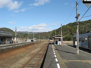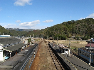 日下より先はまだ行ったことがない。車窓をすこしよく見てみることにしよう。すわり心地に力が入った。しかし、山に狭く囲まれた、日下川の谷底平野を走っていることには変わりないので、別に風景は変わらなかった。鉄道線は谷の北側の山に沿っているので、平地のある背後の車窓のほうがのどかで、また、変化があったかもしれなかった。列車は土佐加茂駅に到着。土佐加茂を出るころ、列車が前からかなり山手に入ってきていたのがよくわかった。「高知を出て西に向かうとこんななるんだ…。」 それはますます強まっていき、まさかこんな山深くなるとは…それはついに峠になってしまった。こんなところに峠なんてあったんだ。しかし、してみると日下川を遡及しきったことになる。ところで、しばらく前から外の様子がおかしい。なんだか日が差しているのがしだいに確かになってきているである。まさか…信じれない。列車はさっきの明るい山沿いの田畑、それから森の中を走り、光あふれる風景をどんどん流していた。顔が青くなり、窓を割りたくなった。そんな圧力を感じたあと、列車は森を抜けて、ころっと別の風景の町へと出る。そしてその風景は、土佐加茂以東とははっきりと違う、驚くほど別ののどかな風景だった。もう高知市圏内を抜け切ったんだと思った。西佐川駅にもうすぐ着く。予定を変更し、そこで降りることを考えはじめた。停車後、放送が入る。緊張しながら耳を澄ませると、ここで10分間停車するという。同時にトイレへの案内など行われた。降りよう。数人しかいない列車の中を、前へと進む。放送を聴いてから前まで進んだので、運転士はトイレだと思ったようだ。切符も見せなくてよかったようだった。